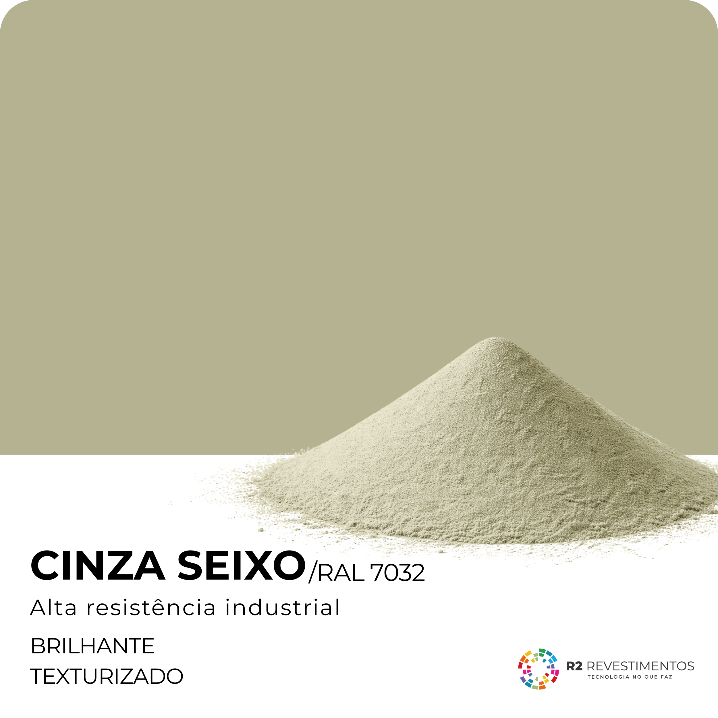 A tinta eletrostática Cinza Seixo RAL 7032 é uma tinta em pó desenvolvida para aplicações industriais, oferecendo acabamento uniforme, alta resistência mecânica e excelente aderência em superfícies metálicas. Seu tom cinza de aparência natural proporciona visual sofisticado, discreto e técnico, sendo amplamente utilizado em ambientes industriais e arquitetônicos que exigem harmonia estética, padronização visual e durabilidade.